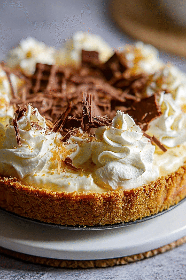 Spread the whipped cream evenly over the bananas. Garnish with chocolate shavings. Chill in the refrigerator for at least 1 hour before serving to allow the pie to set completely.